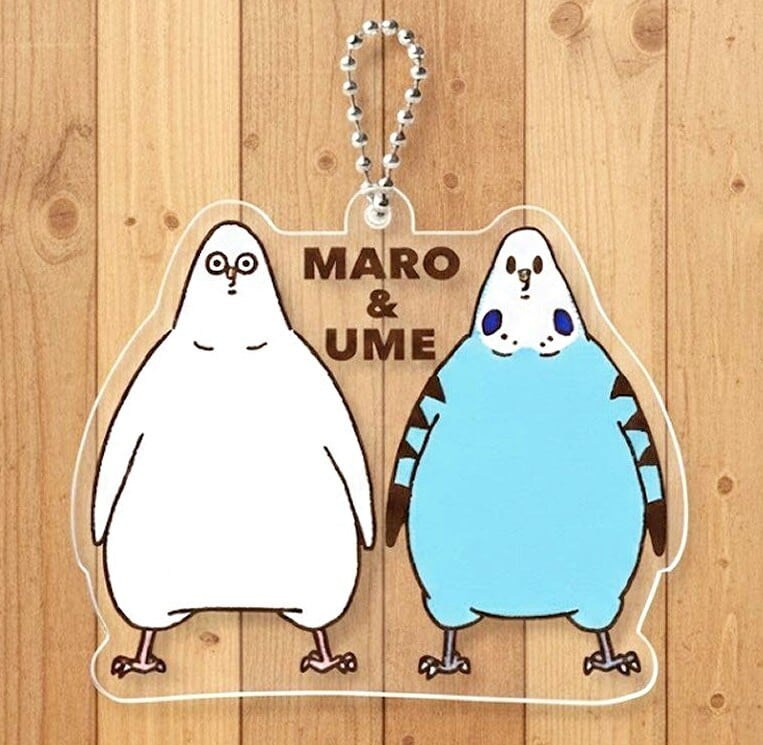 マロとうめのアクリルキーホルダー。サイズは7cmで表面と裏面といった両面の絵柄をお楽しみいただけます!